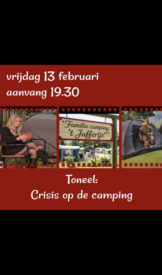 De toneelspelers die op deze avond voor ons hopen op te treden brengen het toneelstuk “Crisis op de camping” op de planken. Het zullen ongetwijfeld “mooie” zomerse taferelen worden.